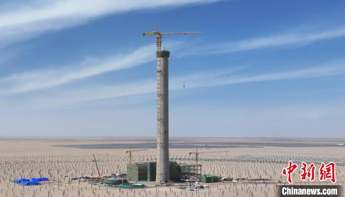 圖為完成封頂后的吸熱塔。蔣軍勝 攝