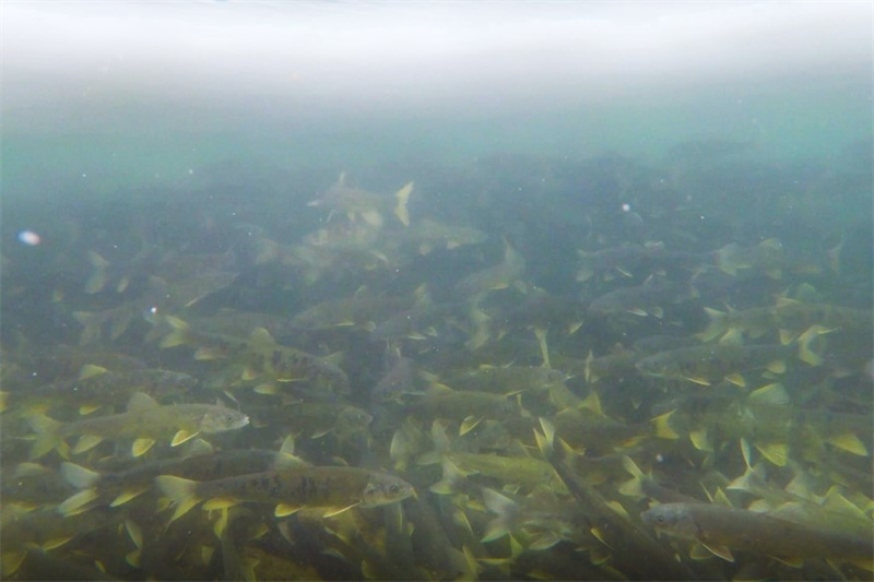 隨著氣溫回暖,連日來,青海省海北藏族自治州剛察縣境內(nèi)青海湖北岸的部分地區(qū)開始出現(xiàn)解凍跡象。冰面之下,成群的青海湖裸鯉(湟魚)在清澈的湖水中游弋,靜待春至大湖開。