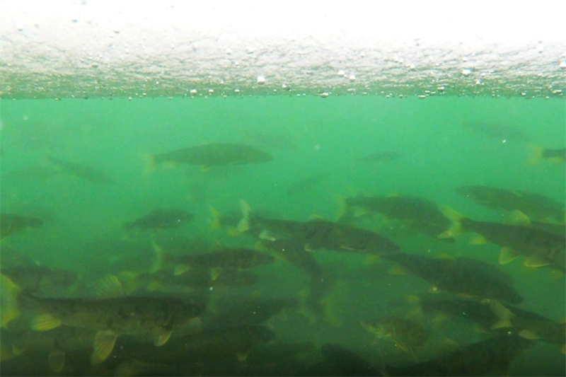 青海湖冰面下的裸鯉。俄日藏俄 攝