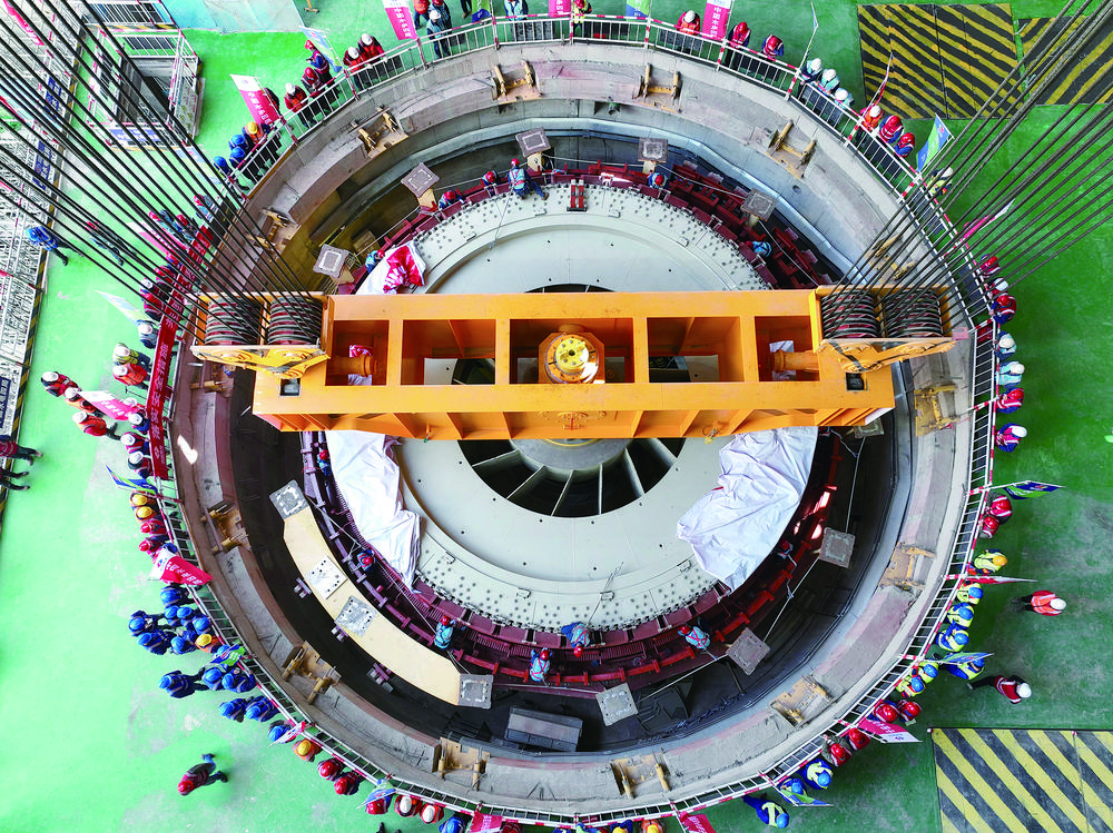 黃河羊曲水電站首臺機組轉子吊裝完成。 黃河公司供圖