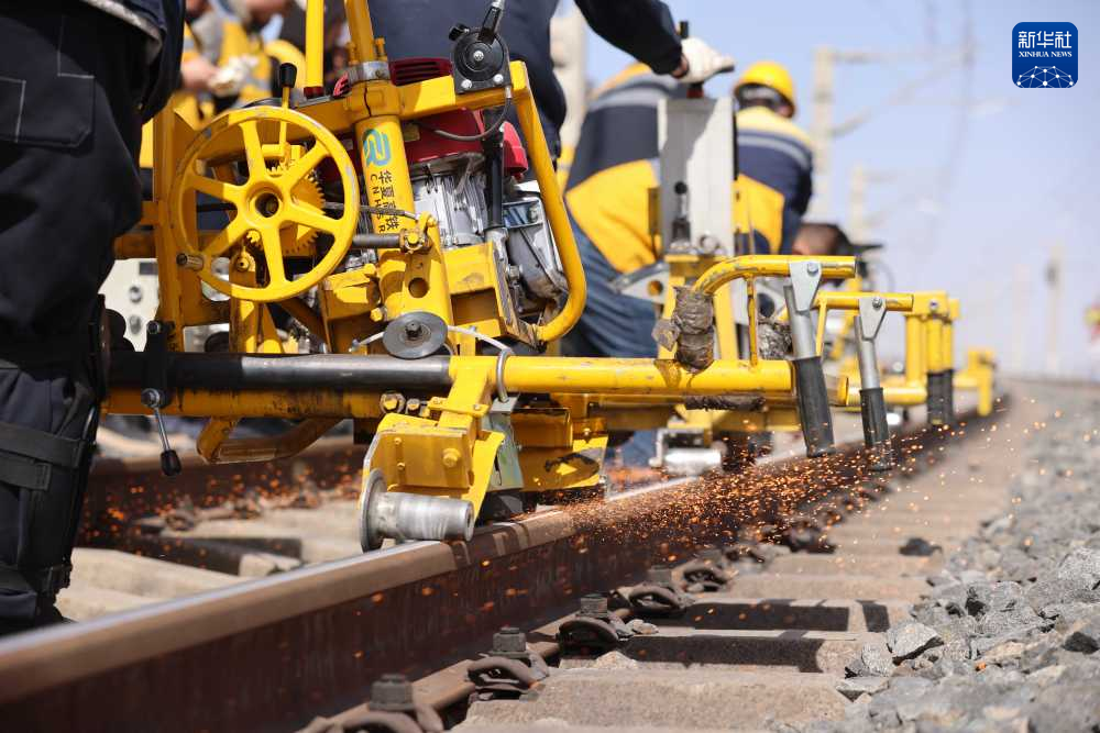 鐵路職工操作機(jī)器打磨軌道。(受訪單位供圖)
