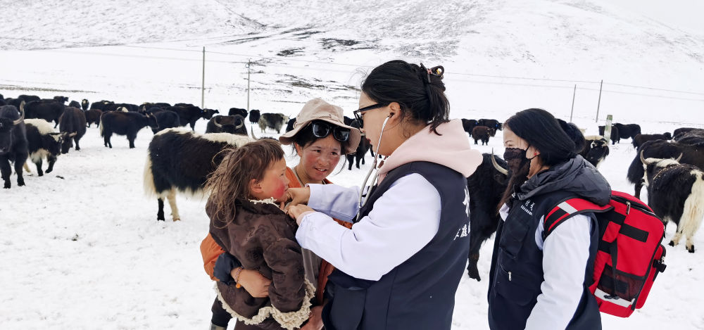近期,四川省甘孜藏族自治州理塘縣連降大雪,路面結(jié)冰,交通不便,導(dǎo)致居住在海拔4000多米遠(yuǎn)牧區(qū)的牧民遇到看病難等問(wèn)題。理塘縣村戈鄉(xiāng)中心衛(wèi)生院組織家庭醫(yī)生團(tuán)隊(duì),冒著風(fēng)雪前往遠(yuǎn)牧區(qū),為慢性病患者、孕產(chǎn)婦、老年人及小孩等送醫(yī)送藥。