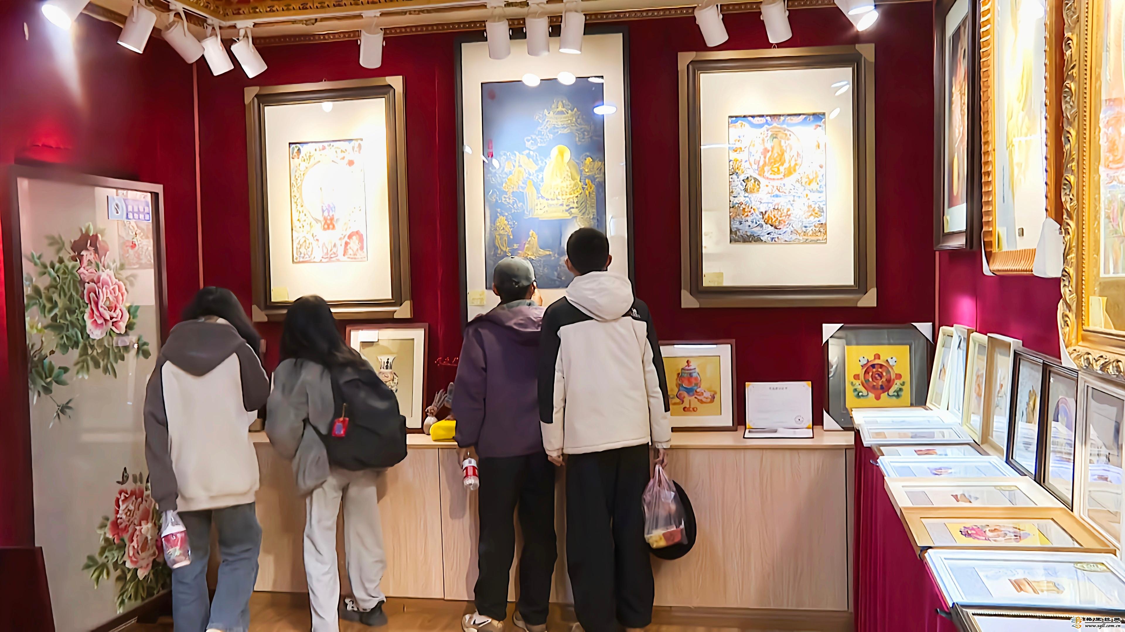 走進(jìn)位于獨(dú)克宗古城的香格里拉藏繡文化藝術(shù)院,一件件精美的手工藏繡作品陳列在展館內(nèi)。堆繡、盤(pán)金、打籽針?lè)ㄕ故境霾煌L(fēng)格的藏繡手法,細(xì)韌、明亮而又富有彈性的絲線使得繡品艷麗而有光澤,吸引著南來(lái)北往的游客前來(lái)參觀。