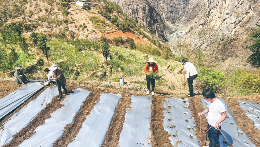 毛菇廠村位于雅礱江環(huán)繞錦屏山的大急彎上,全村平均海拔1900米,地處高山峽谷地帶,過去一直有村民將自家種植的玉米、白菜及各種蔬菜自行銷往縣城,但這種銷售方式相對傳統(tǒng),零星分散。如何在產(chǎn)能較低的傳統(tǒng)農(nóng)業(yè)中找到“特色細(xì)分領(lǐng)域”集中發(fā)力?2023年,煙袋鎮(zhèn)黨委等進(jìn)行多方調(diào)研后,決定依托該村土壤資源優(yōu)勢,加速土地流轉(zhuǎn),“匯小田變大田”。