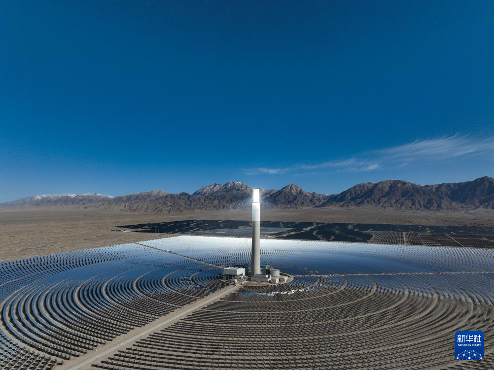 這是4月23日在青海省海西蒙古族藏族自治州德令哈市光伏(光熱)產(chǎn)業(yè)園拍攝的光熱電站(無人機照片)。新華社記者 張龍 攝