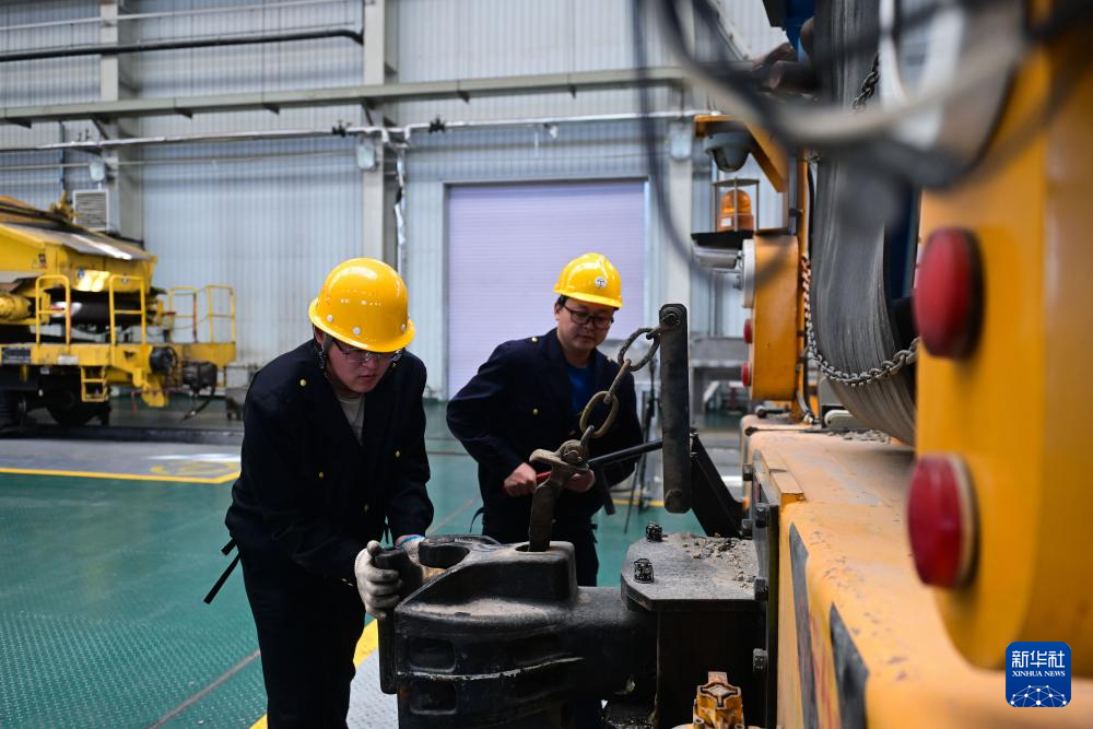 4月25日,中國(guó)鐵路青藏集團(tuán)有限公司西寧工務(wù)機(jī)械段職工在檢查車(chē)鉤。新華社記者 張龍 攝