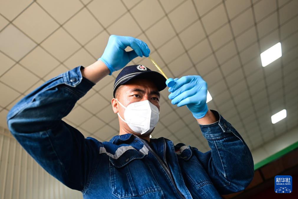 4月25日,中國(guó)鐵路青藏集團(tuán)有限公司西寧工務(wù)機(jī)械段職工在提取油樣。新華社記者 張龍 攝