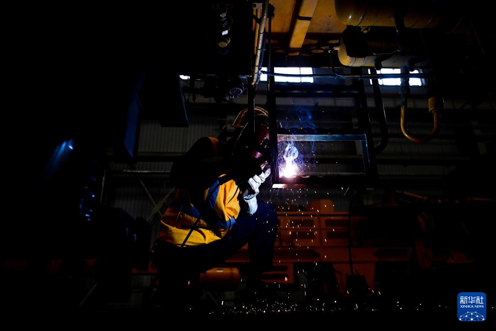 4月25日,中國(guó)鐵路青藏集團(tuán)有限公司西寧工務(wù)機(jī)械段職工在焊接車(chē)梯。新華社記者 張龍 攝