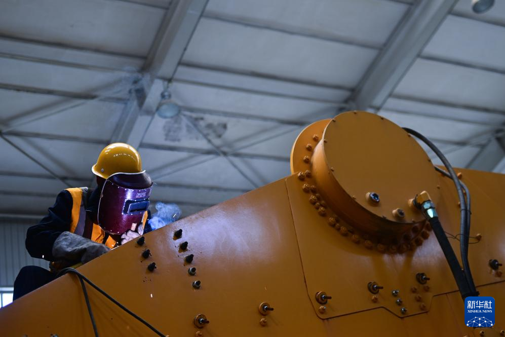4月25日,中國(guó)鐵路青藏集團(tuán)有限公司西寧工務(wù)機(jī)械段職工在焊接振動(dòng)篩。新華社記者 張龍 攝