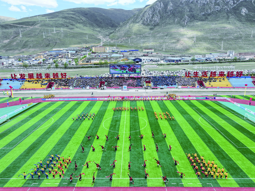 玉樹市民求培說:“玉樹足球是我們的驕傲,我自己也非常喜歡踢足球,今天特意過來為家鄉(xiāng)的球隊喝彩助威,希望他們可以在家門口取得勝利。”隨著一聲哨響,比賽正式開始,所有人的目光都聚焦在綠茵場上,隊員們奔跑如飛迅速進入“戰(zhàn)斗”狀態(tài)。一腳傳中、挑球過人……雙方互不相讓,積極拼搶。