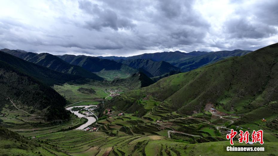 5月31日,青海省果洛藏族自治州班瑪縣以南39公里處的子木達溝綠樹成蔭。紅軍長征經(jīng)過班瑪時多次來往于此溝,故民眾改子木達溝為“紅軍溝”,以示紀(jì)念。班瑪是中國工農(nóng)紅軍二萬五千里長征唯一經(jīng)過青海的地方。(無人機照片)薛蒂 攝