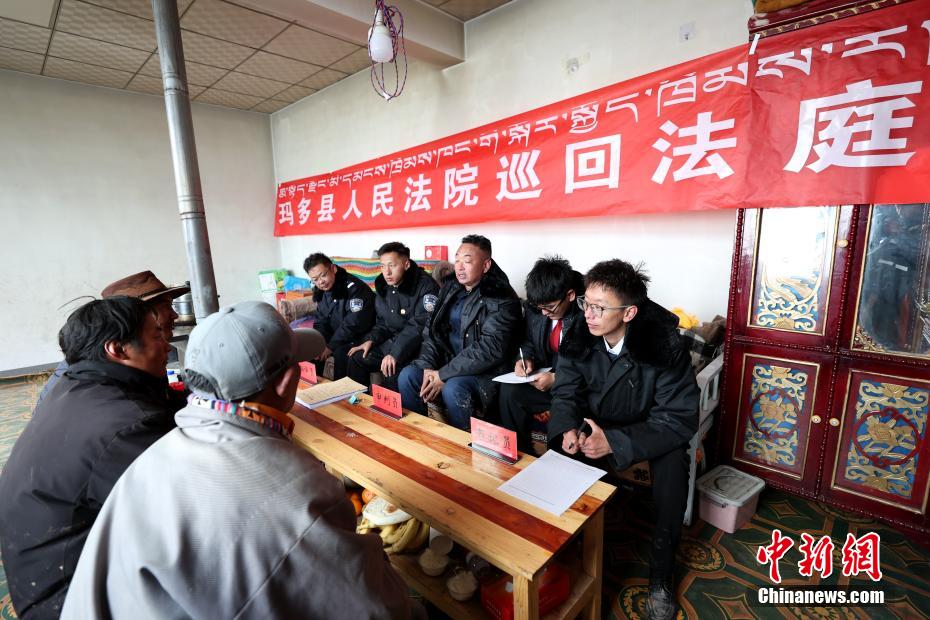 瑪多縣地處黃河源頭,是黃河發(fā)源后流經(jīng)的第一個(gè)縣城。瑪多平均海拔超4500米,是青海省海拔最高的縣,也是人類生存環(huán)境最惡劣的地區(qū)之一,加上地廣人稀,交通不便,法官調(diào)查取證難、送達(dá)難,農(nóng)牧民參與訴訟難。1957年,瑪多縣人民法院成立之初就成立了“馬背法庭”。巡回法庭的的法官經(jīng)常帶著干糧,騎著馬找到當(dāng)事人,就地審理案件。
