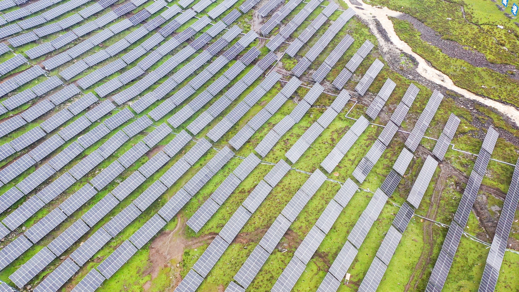 6月20日,海拔4200多米的高山遠(yuǎn)牧點(diǎn),一群群牦牛悠閑地吃著嫩綠的青草,不時發(fā)出“哞哞”的叫聲。五六米之外,就是一排排藍(lán)色太陽能光伏板整齊排列,幾十個工人穿梭其中忙著巡檢。