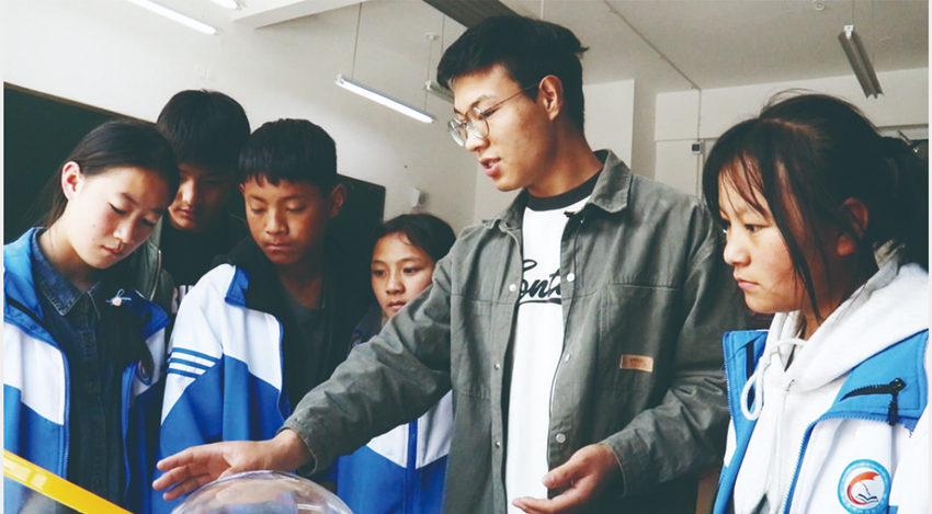雅江縣呷拉鎮(zhèn)初級中學(xué)教師開展科普教學(xué)。