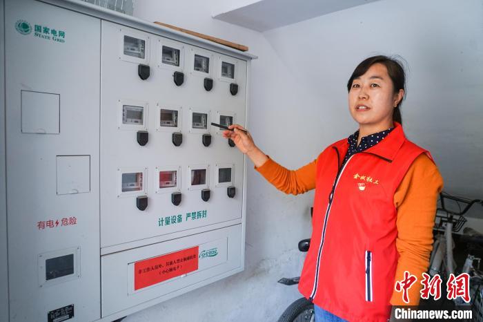 圖為園林社區(qū)黨支部書記、居委會主任喬鴻霞介紹電表分戶改造情況。馬銘言攝