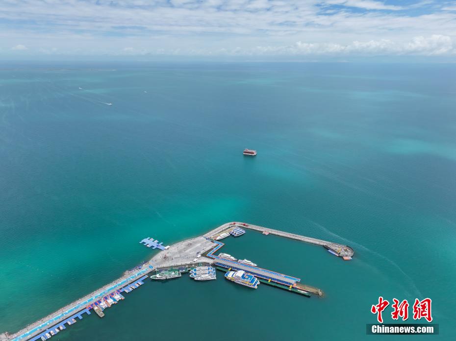 7月8日,航拍游客在青海省海南藏族自治州共和縣青海湖二郎劍景區(qū)內(nèi)觀光。(無人機照片)中新社記者 馬銘言 攝