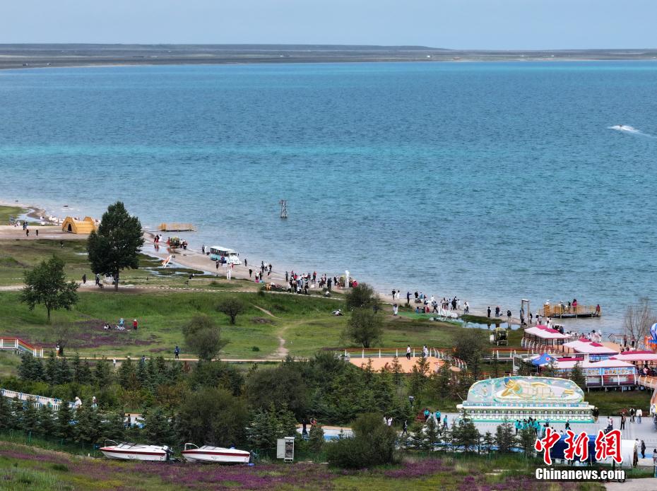 7月,高原藍寶石青海湖一片生機勃勃的景象,碧藍的湖水,青綠的草地,青海湖特有珍稀物種湟魚與水鳥和諧共生,吸引八方賓客到此感受大自然的無限魅力。