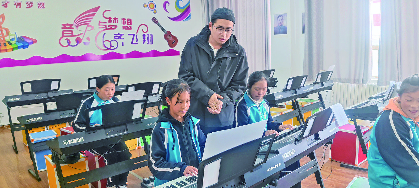 2023年12月,在上海援青團隊成員、上海音樂學(xué)院教師湯聲聲的倡導(dǎo)下,上海音樂學(xué)院鼎力支持下,中國首支藏族青少年管樂團“果洛州青少年管樂團”在果洛西寧民族中學(xué)成立。今年“五一”期間,這支管樂團亮相中國第十七屆優(yōu)秀管樂團隊展演,首秀便從118支團隊中脫穎而出,榮獲“中華杯”優(yōu)秀管樂團展演團隊獎。