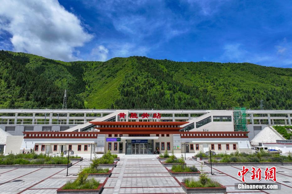 圖為7月7日拍攝的川青鐵路黃龍九寨站站房外景。(無人機(jī)照片)中新社記者 劉忠俊 攝