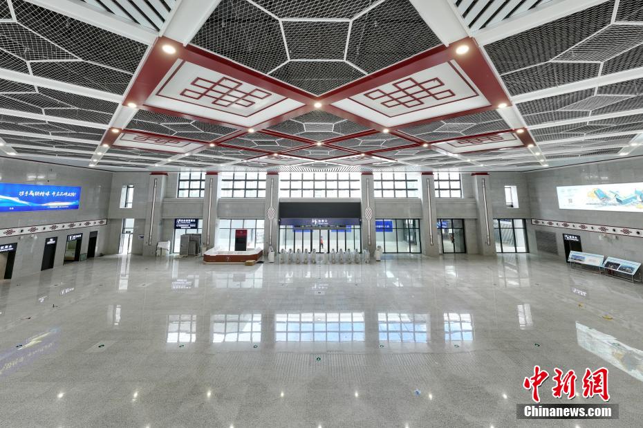 圖為7月7日拍攝的川青鐵路黃龍九寨站候車大廳一角。(無人機(jī)照片)中新社記者 劉忠俊 攝