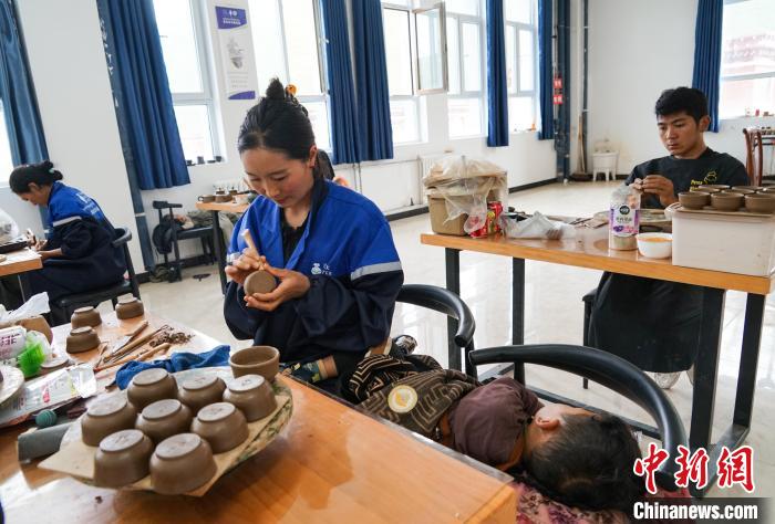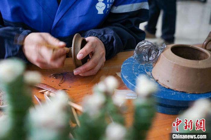 7月18日,在班瑪黑陶培訓(xùn)及體驗(yàn)中心,學(xué)員正在制作班瑪黑陶器皿。中新社記者 馬銘言 攝