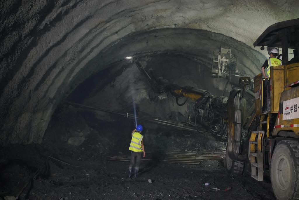 三臂鑿巖臺(tái)車正在德勝隧道中施工(資料圖)。中鐵十六局供圖