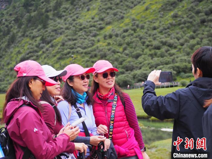 身穿沖鋒衣,腳踩徒步鞋,頭戴運(yùn)動帽,四位來自臺灣的觀光客7日上午行走在四川省甘孜藏族自治州稻城亞丁景區(qū)內(nèi),她們的臉上洋溢著笑容,不時停下和遠(yuǎn)處的央邁勇雪山合影。