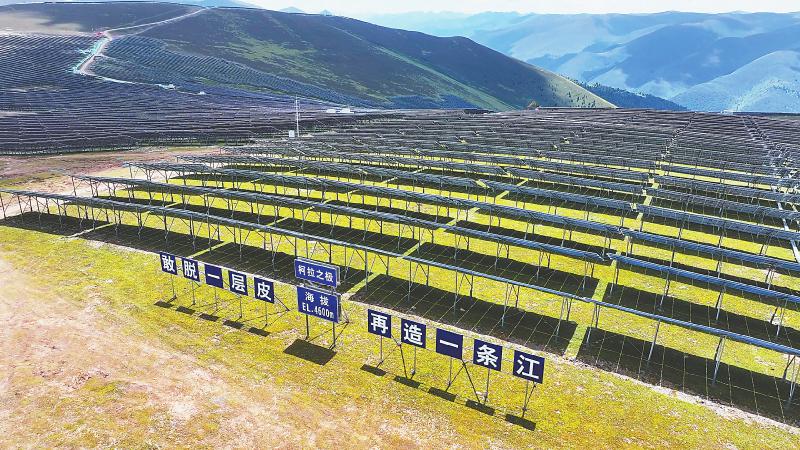 柯拉光伏電站的標(biāo)語牌。四川日?qǐng)?bào)全媒體記者 黃瀟 攝
