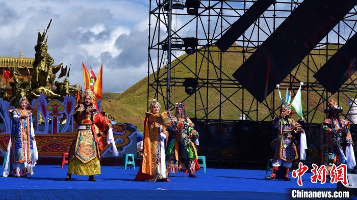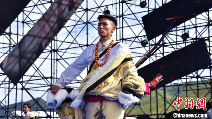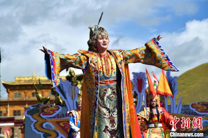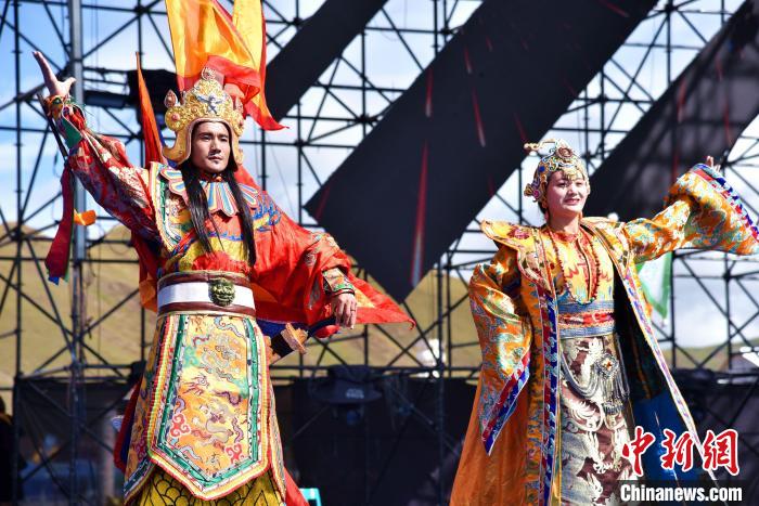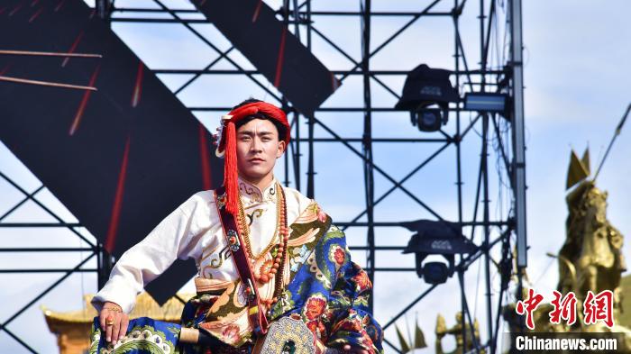 9月12日,在青海省果洛藏族自治州甘德縣柯曲草原,當(dāng)?shù)孛癖娬寡菔吩?shī)劇《嶺格爾七寶賽馬》。該史詩(shī)劇的編排靈感源自當(dāng)?shù)孛耖g口口相傳的《格薩爾王傳》,說(shuō)唱藝人通過(guò)吟唱與動(dòng)作相結(jié)合的形式,講述了傳說(shuō)中嶺國(guó)國(guó)王格薩爾賽馬稱(chēng)王的故事。此間表演的民族服裝秀、才藝展示等,也彰顯了“中國(guó)格薩爾文化之鄉(xiāng)”的魅力。