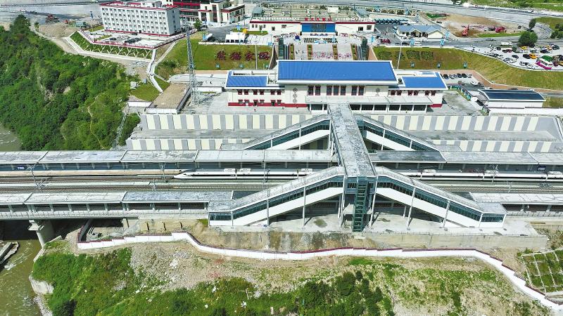 川青鐵路起自成都平原至青藏高原,是我國(guó)“八縱八橫”高鐵網(wǎng)中蘭州、西寧至廣州通道的重要組成部分。全線分段建設(shè),此前,成都東至鎮(zhèn)江關(guān)段、海東西至西寧段已投入運(yùn)營(yíng),此次開通的鎮(zhèn)江關(guān)至黃勝關(guān)段位于松潘縣境內(nèi),設(shè)有鎮(zhèn)江關(guān)站、松潘站、黃龍九寨站和黃勝關(guān)站4座車站,九寨溝景區(qū)由此成功接入“動(dòng)車版圖”。