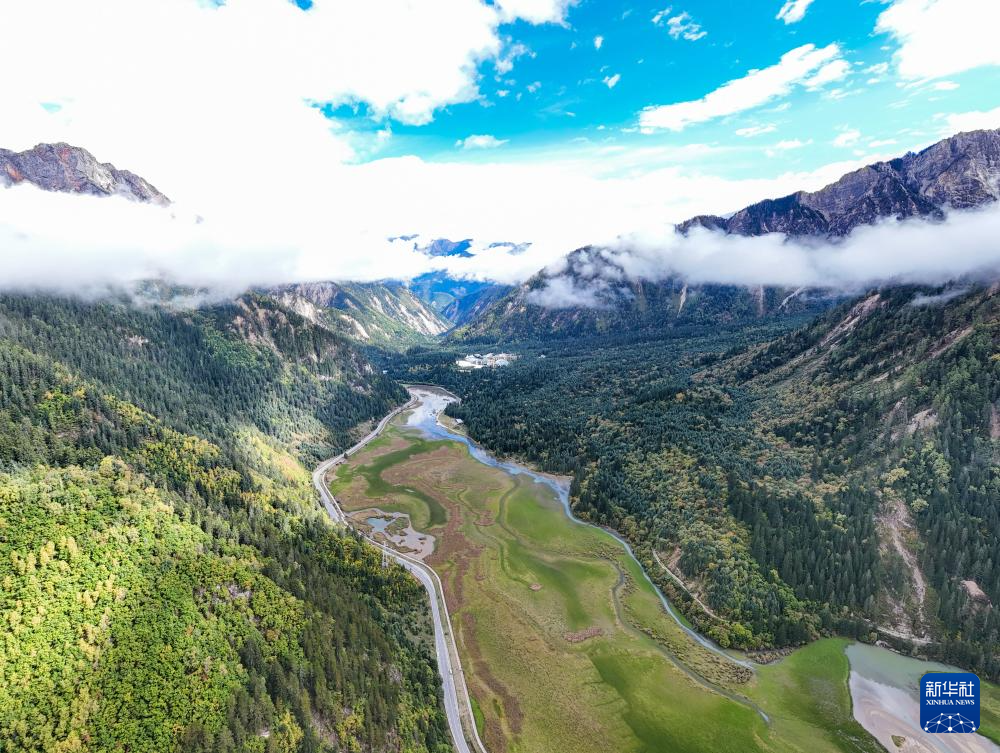 這是10月10日拍攝的九寨溝縣中國(guó)綠發(fā)華美勝地度假區(qū)(無(wú)人機(jī)照片)。新華社記者 王曦 攝