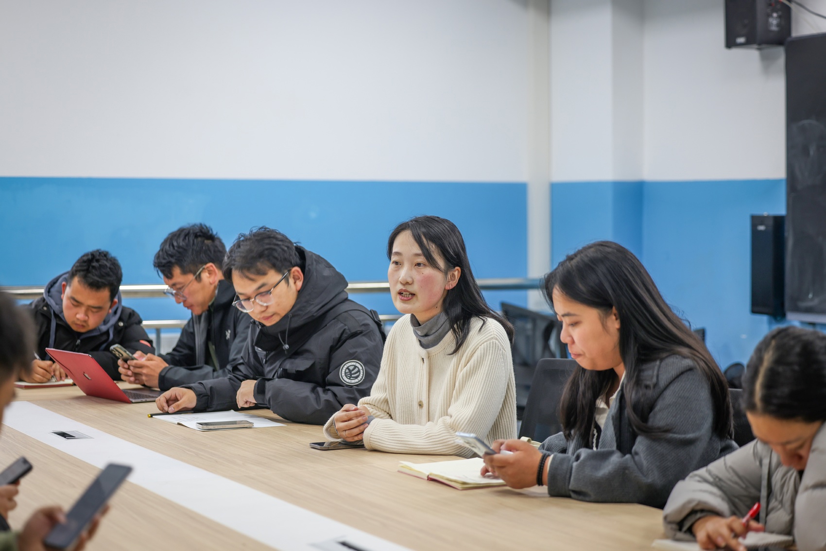 陳宇琪(右三)與康定二中老師們一起討論社團活動方案。洛絨尼瑪 攝