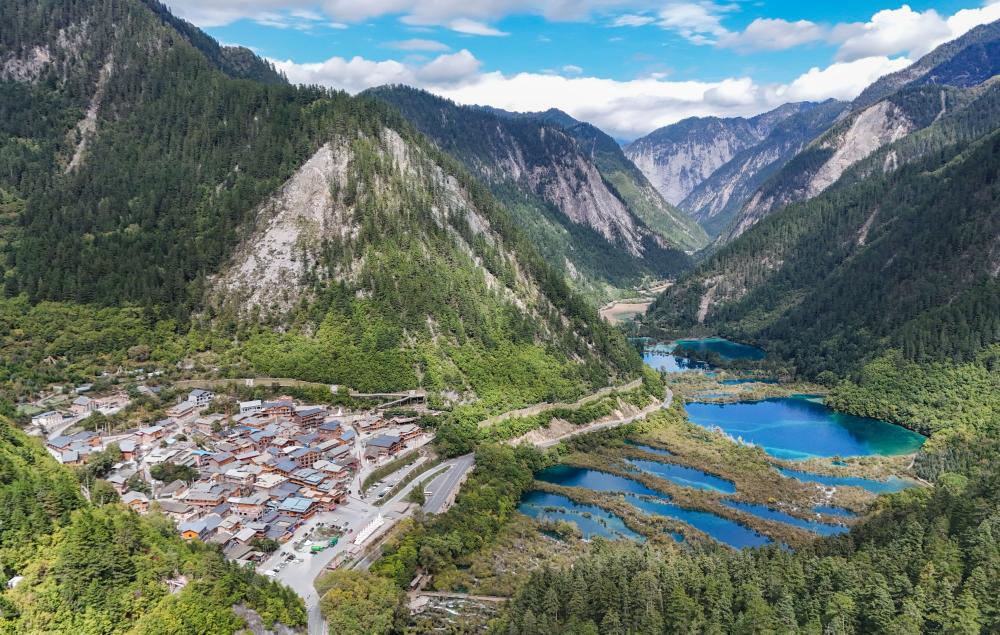 九寨溝景區(qū)內的樹正寨和樹正群海。新華社記者 王曦 攝