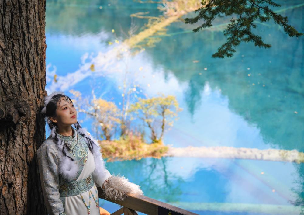 江蘇林女士的新婚蜜月之行便是來到九寨溝,她特意租了傳統(tǒng)藏族服飾、化上了特色妝容,站在五花海的棧道上,身后是碧藍湖水,身側是林影婆娑。“在這么美的景色之下穿上民族服裝,我想拍出來的照片一定很美!”