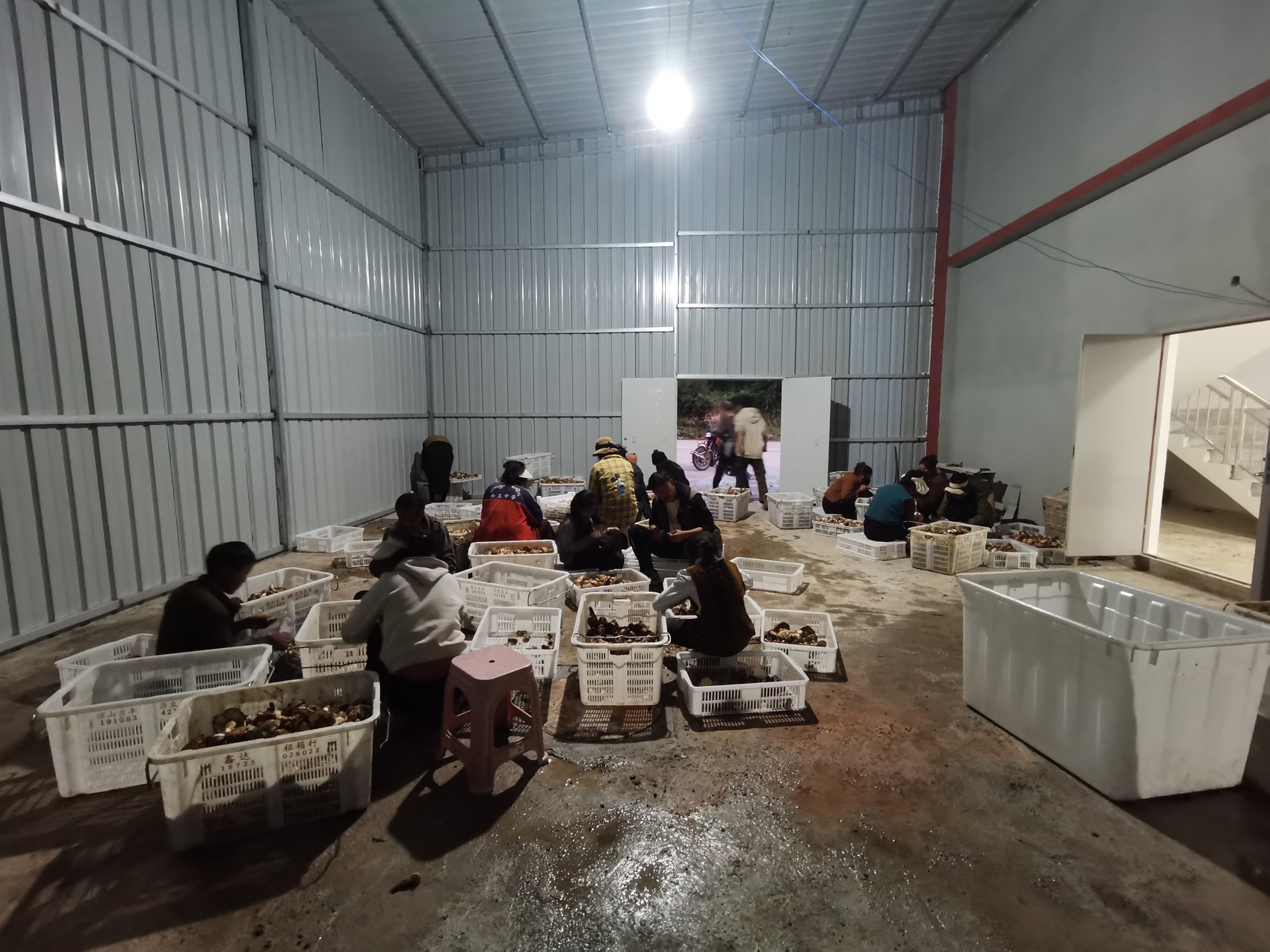 德西村的菌類(lèi)加工車(chē)間內(nèi),工人們?cè)谶M(jìn)行初步分揀。受訪者供圖