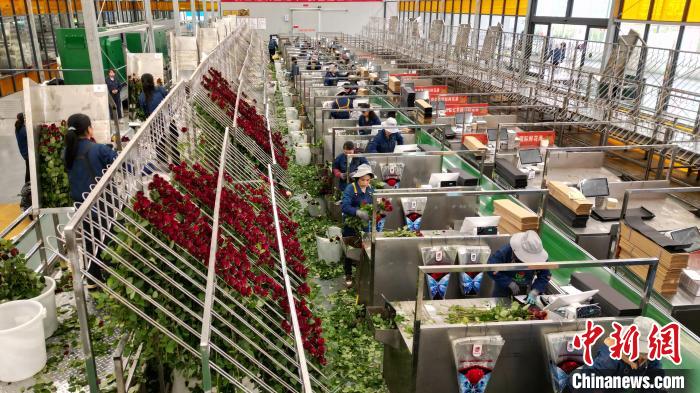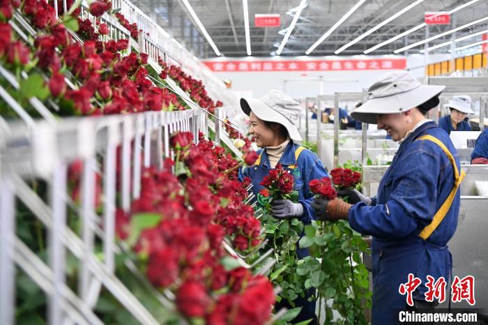 甘肅臨夏回族自治州臨夏市23日寒風(fēng)正勁。步入該市枹罕鎮(zhèn)青寺村的百益億農(nóng)國際鮮花港內(nèi),暖意正濃。引自荷蘭的多個品種玫瑰花競相開放,它們即將被打包發(fā)往北京、上海、廣州,以及東南亞等地。