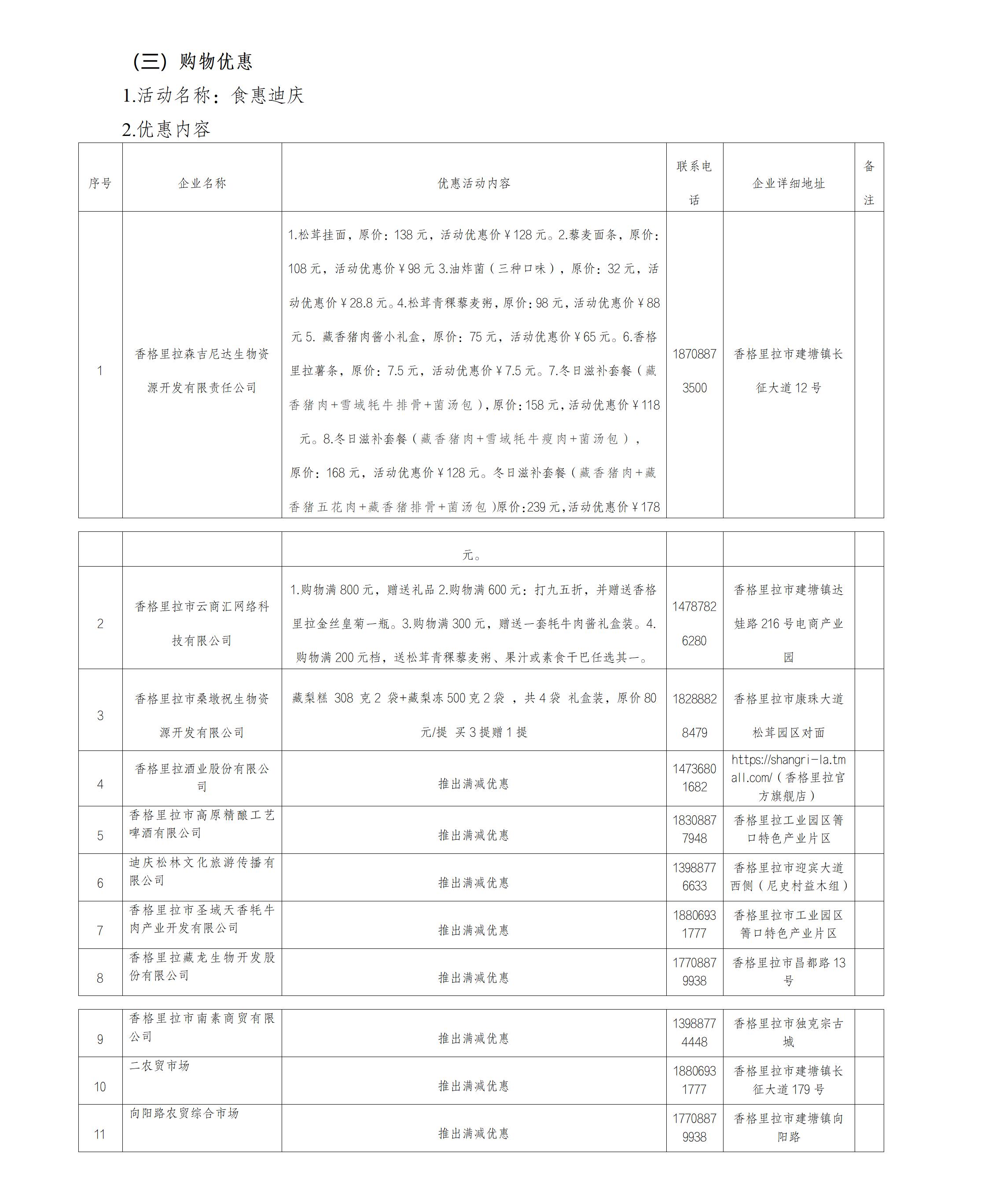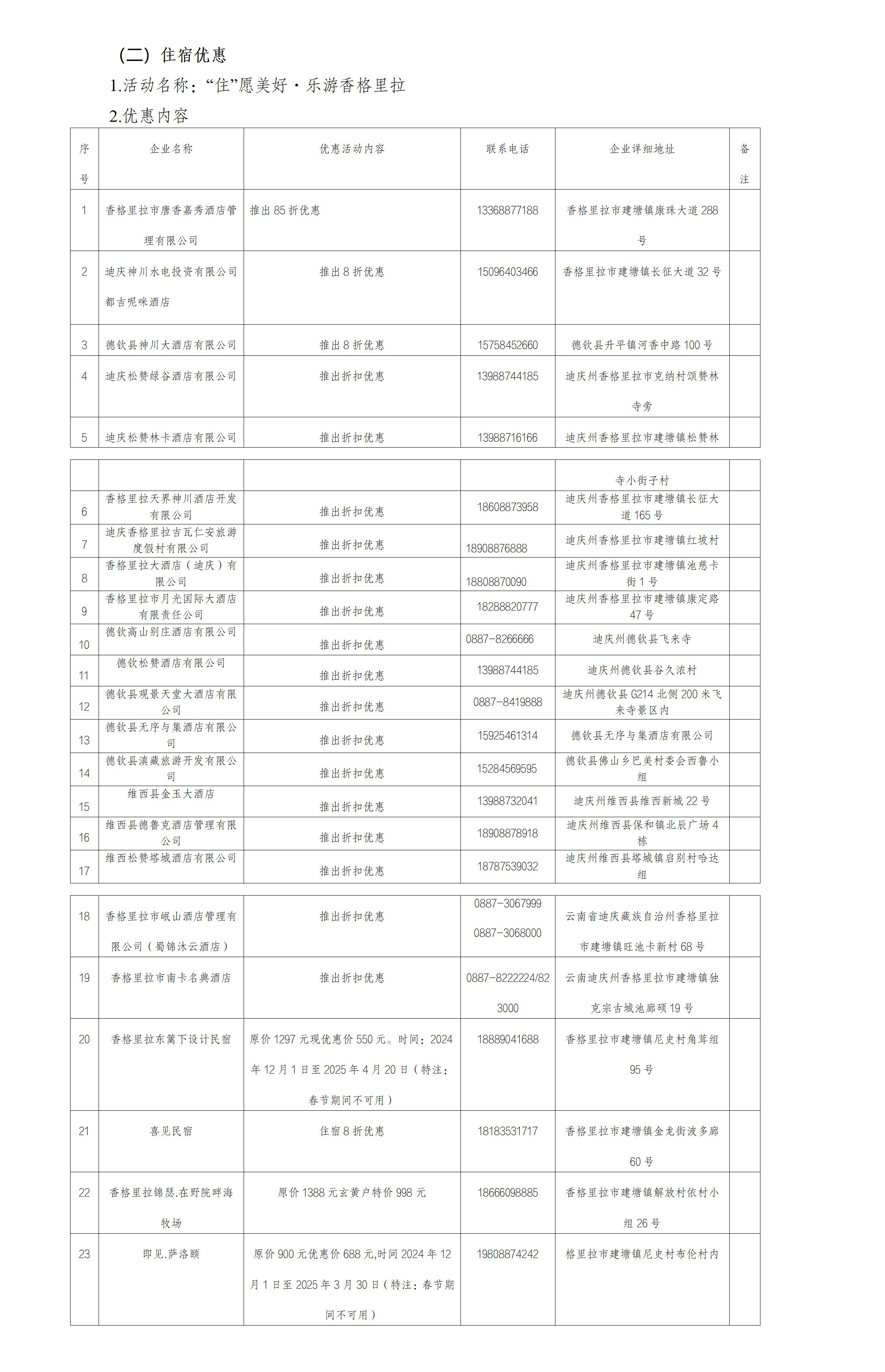 為熱烈迎接香格里拉的冬季旅游市場消費客群,迪慶商務(wù)部門在動車開通一周年之際特別推出一系列“吃、住、購”的優(yōu)惠政策。6家線上特色餐飲企業(yè)及20家古城精選餐飲業(yè)將提供2.2折至9.2折的超值優(yōu)惠,同時發(fā)放各類優(yōu)惠券;19家優(yōu)質(zhì)線上住宿企業(yè)及州內(nèi)百余家民宿將提供8折至8.5折的住宿優(yōu)惠;10余家迪慶特色產(chǎn)品的生產(chǎn)銷售企業(yè)推出滿減折扣優(yōu)惠、享受贈品的優(yōu)惠福利,讓廣大游客樂游香格里拉提升旅游體驗。