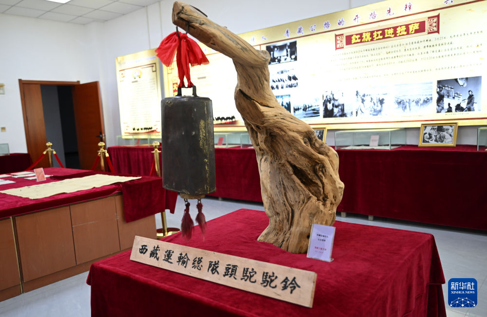 這是11月26日拍攝的陳列在莫河駱駝場青藏駝隊歷史陳列館的西藏運輸總隊頭駝駝鈴。新華社記者 張龍 攝