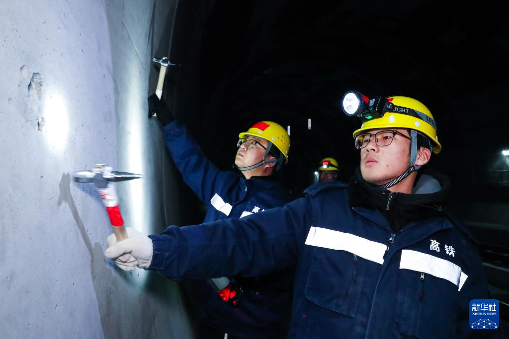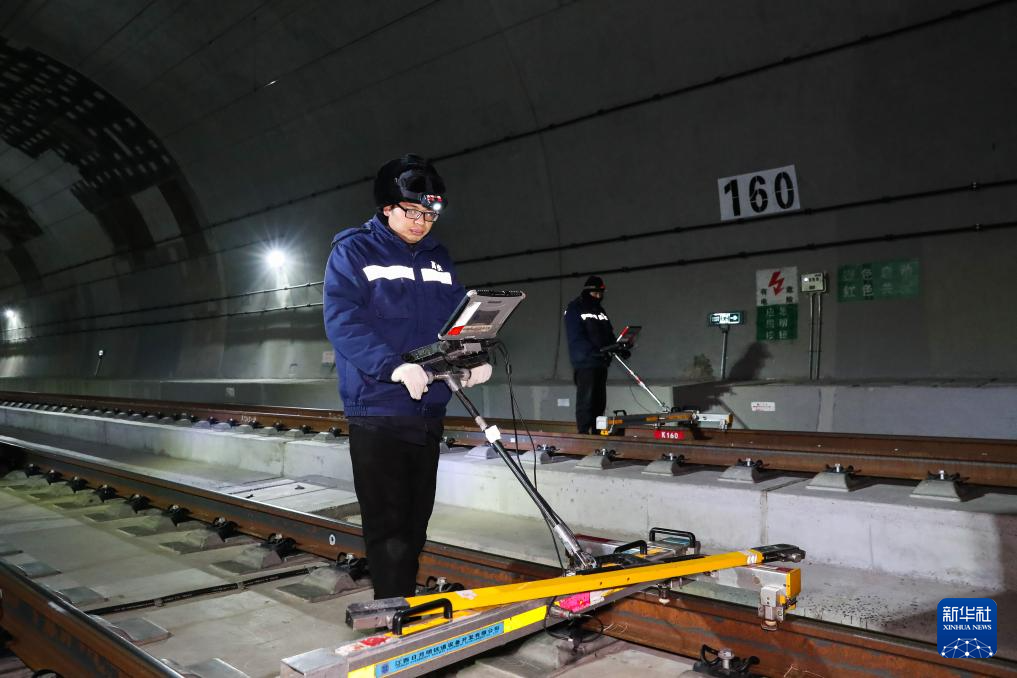 面對首次春運“大考”,這群守護(hù)者頂著刺骨寒風(fēng),鉆隧道、爬高山,在列車停運的深夜對隧道及線路仔細(xì)檢查,為旅客的春運回家路保駕護(hù)航。