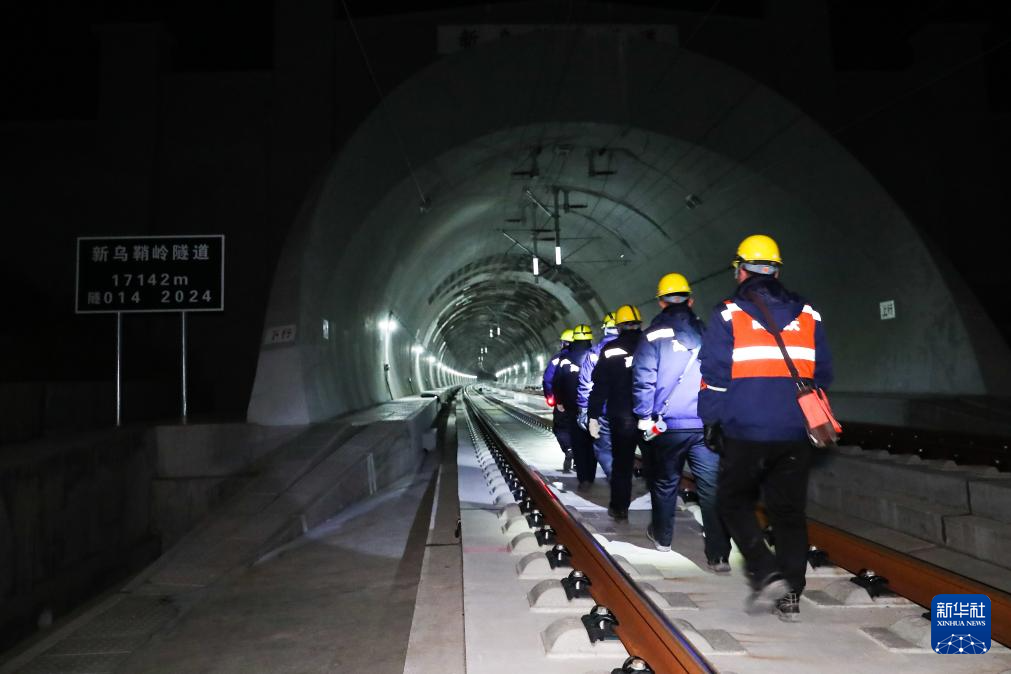 1月14日凌晨,橋隧工在新烏鞘嶺隧道內(nèi)開展全面檢查。新華社記者 郎兵兵 攝