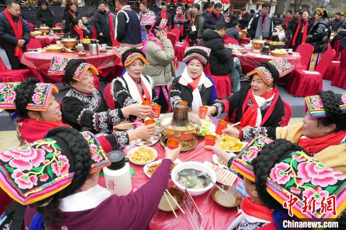 1月25日,四川理縣,阿壩州首屆村晚上的壩壩宴。中新社記者 安源 攝
