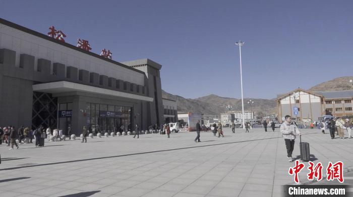 1月16日,大批旅客在川青鐵路松潘站下車?!钣桀E 攝