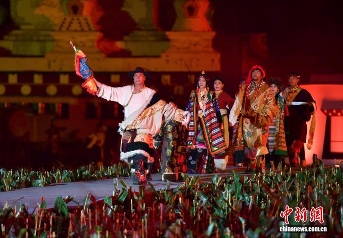 整場田園“瘋”裝秀共分為四個篇章。燈光秀一結(jié)束,第一篇章“夢中的香巴拉”情景劇緩緩啟幕。在悠揚(yáng)的藏族山歌中,村民們身穿傳統(tǒng)服飾,演繹著鄉(xiāng)城人民日常生活的幸福圖景:田間的辛勤勞作、豐收時洋溢的笑容……每一個場景都浸潤著濃濃的鄉(xiāng)情,仿佛將觀眾帶入真實而溫暖的田園生活。