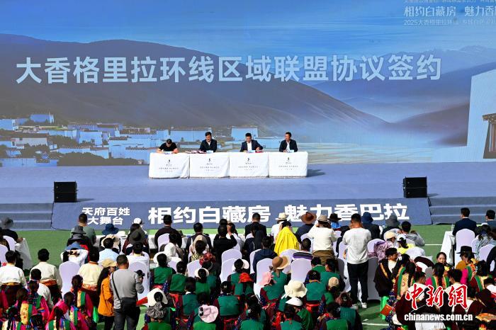 開(kāi)幕式上,大香格里拉環(huán)線旅游聯(lián)盟舉行文旅資源推介四川得榮、鄉(xiāng)城、稻城縣和云南麗江市進(jìn)行大香格里拉環(huán)線旅游聯(lián)盟協(xié)議簽約,簽約方將推動(dòng)環(huán)線內(nèi)交通互聯(lián)互通、景區(qū)聯(lián)動(dòng)開(kāi)發(fā)、客源共享互送、文化傳承共護(hù),讓“大香格里拉”進(jìn)一步成為有機(jī)聯(lián)動(dòng)、優(yōu)勢(shì)互補(bǔ)的發(fā)展共同體。