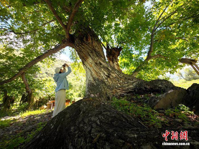 正值核桃收獲季,33歲的樹主澤仁扎西小心翼翼踩著木梯,將果實(shí)捧在手中,指尖不時(shí)輕撫樹干檢查健康狀況?!拔覐男【驮谶@樹下跑著長(zhǎng)大,”他笑著回憶,兒時(shí)和伙伴圍著樹干捉迷藏,農(nóng)忙時(shí)節(jié),全村人會(huì)聚在樹蔭下分享午餐,“核桃果仁能做包子、奶餅,磨成粉拌進(jìn)酥油茶,是我們生活里離不開(kāi)的味道?!边@份與古樹共生的日常,正是當(dāng)?shù)卮迕瘛熬次纷匀?、融入自然”生態(tài)智慧的縮影。