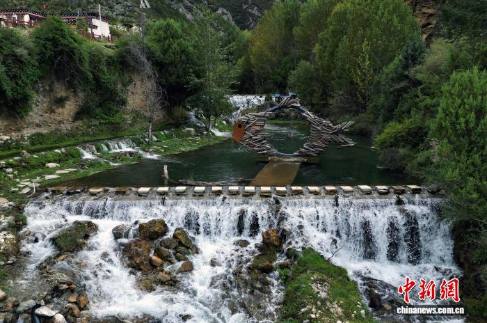 9月18日,四川省鄉(xiāng)城縣,航拍尼丁峽谷溪水形成的小瀑布。(無(wú)人機(jī)照片) 記者 王磊 攝