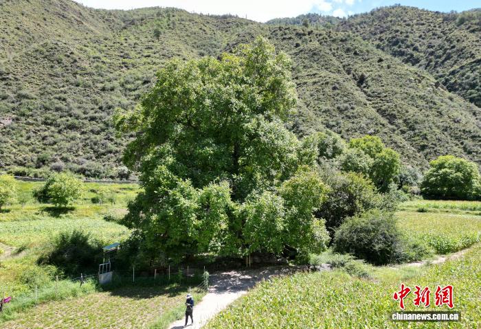 圖為千年“胡桃王”全貌。(無(wú)人機(jī)照片) 記者 張浪 攝