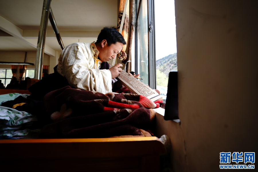 在西藏昌都市江達縣波羅鄉(xiāng)木松民族手工藝有限責任公司,波羅鄉(xiāng)村民白瑪加村在制作木刻(5月1日攝)。白瑪加村2017年開始學習波羅木刻,如今已經(jīng)出師,成為一個熟練的木刻藝人。在公司里,白瑪加村一個月能制作6塊木刻作品,每個月有4000多元的收入。新華社記者詹彥 攝
