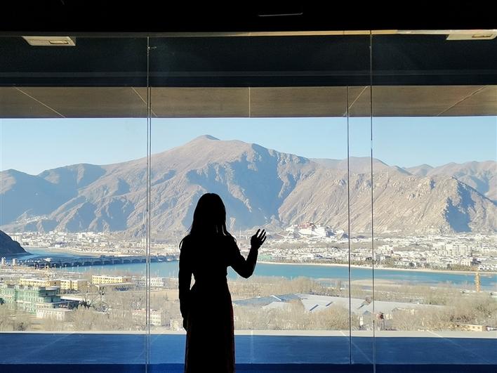 西藏非遺博物館位于拉薩河南岸的慈覺林文創(chuàng)園內(nèi),主體建筑共五層,目前開放參觀的是一、二層主展區(qū),共展出50余項國家級非遺項目——包括天文歷算、藏醫(yī)藥、藏紙和雕版印刷、紡織技藝、傳統(tǒng)服飾等,大家熟悉的唐卡、藏香、牛皮船,在這里也能看到。位于博物館五層的互動體驗區(qū)是整座建筑的一大亮點。這里擁有絕佳的觀景視角,遠眺布達拉宮,俯瞰拉薩河谷,壯美的景色讓人流連忘返。