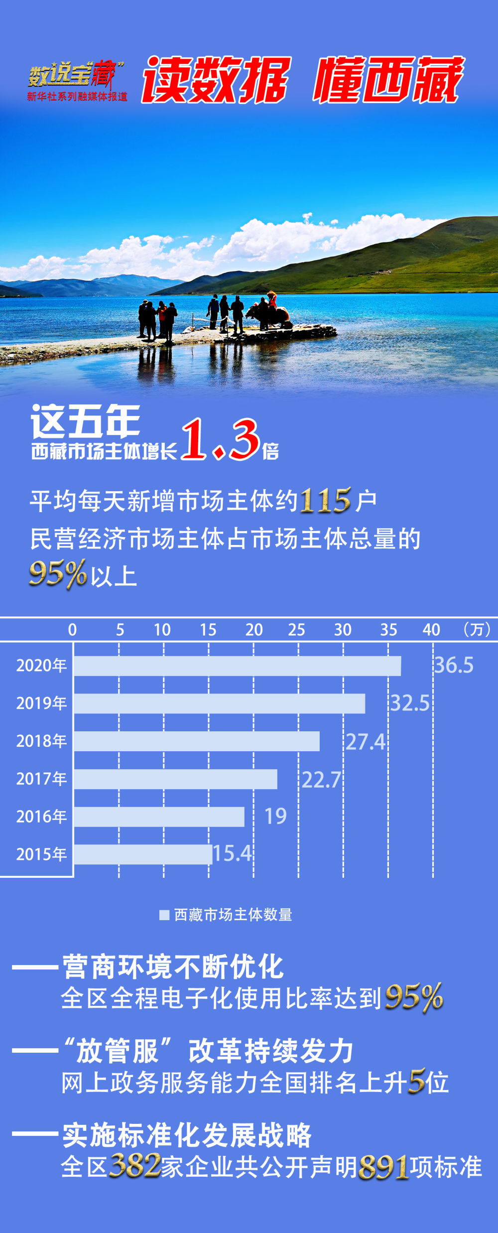“十三五”期間,西藏市場主體活力不斷被激發(fā),群眾創(chuàng)業(yè)辦事便利度、滿意度顯著提升。西藏自治區(qū)政府統(tǒng)計數(shù)據(jù)顯示,目前西藏市場主體數(shù)量已達(dá)36.5萬戶,較“十二五”末增長了1.3倍,5年來平均每天新增市場主體約115戶。
